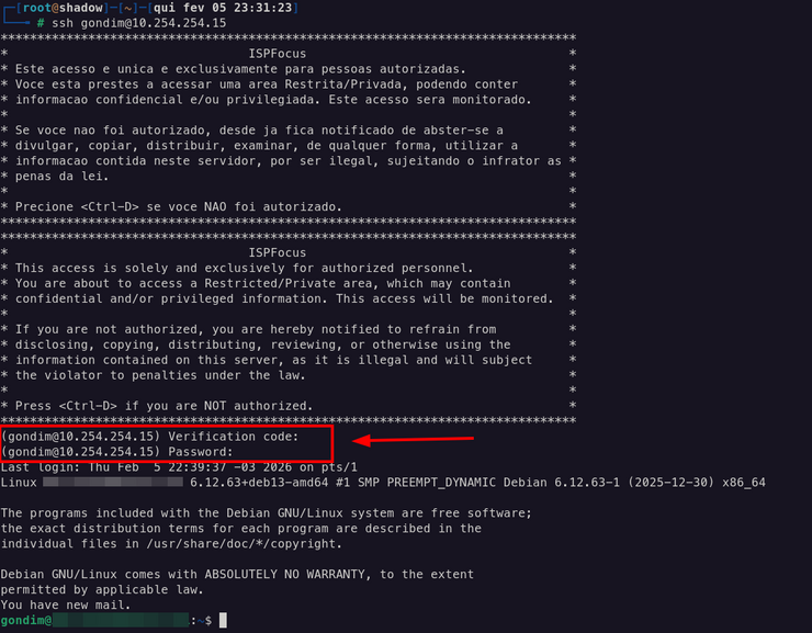 Nesse momento você poderá testar o SSH para o seu servidor e verá algo assim: