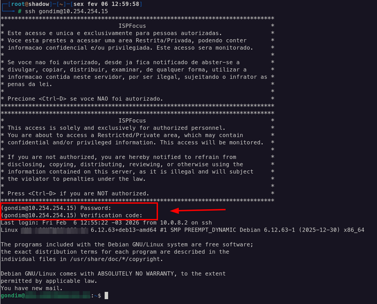 Nesse momento você poderá testar o SSH para o seu servidor e verá algo assim: